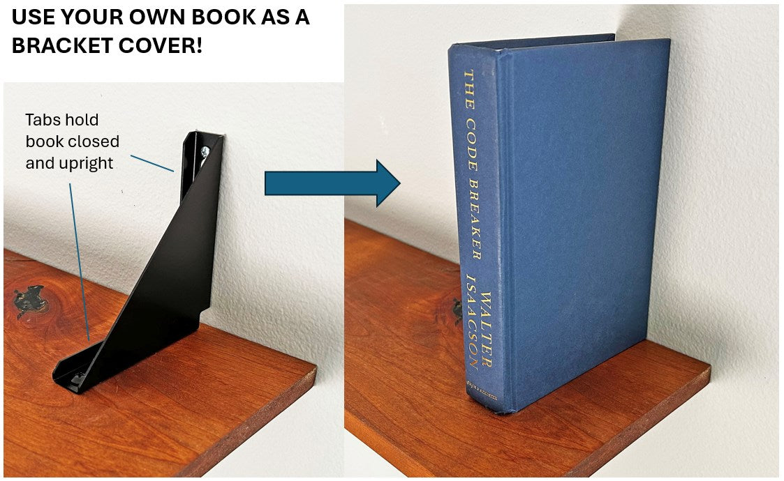 Designed to be cleverly hidden by one of your own hardcover books or by one of our custom bracket covers (sold separately).