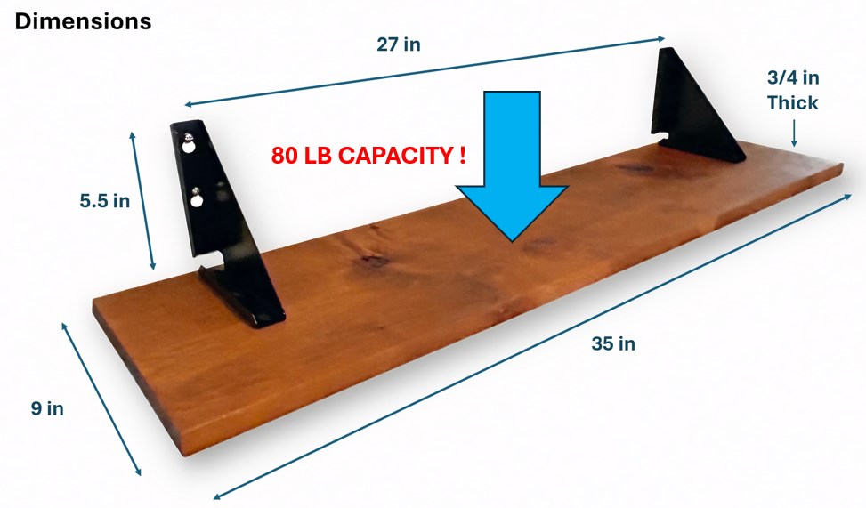 Shelf: 35 x 9 x 3/4 inches, Alder with Natural Dark Tung Oil Finish